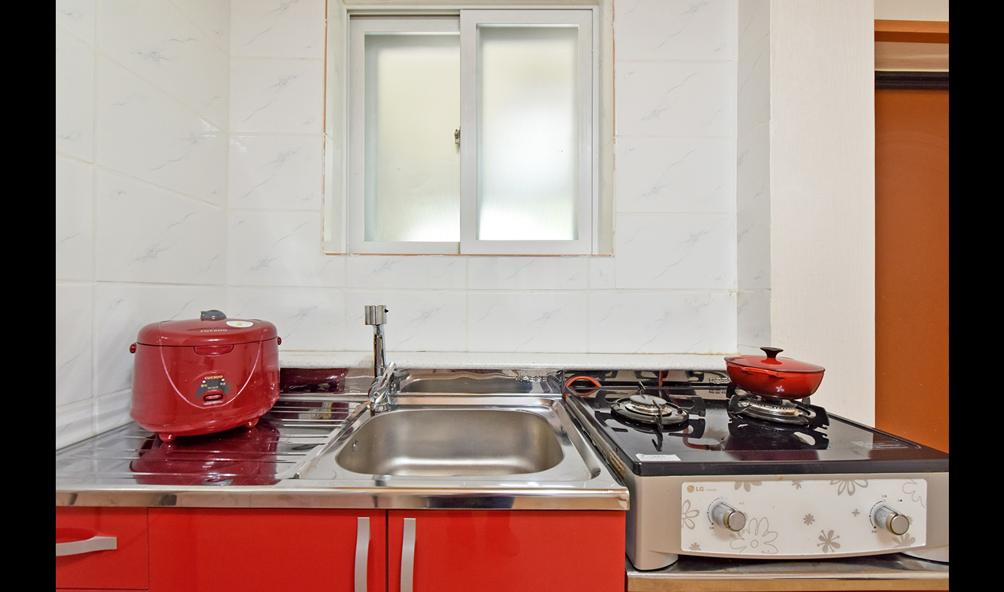 집기품목 : 에어컨, TV, 화장대, 식탁, 냉장고, 전자렌지, 전기밥솥, 전기주전자, 가스렌지, 취사도구, 욕실, 테라스